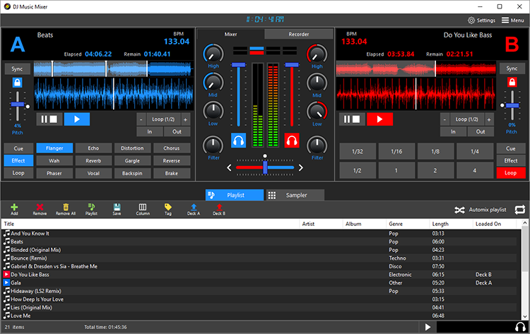 DJ Music Mixer is the most powerful and professional DJ Software on today's market which includes all the advanced features a real DJ needs.